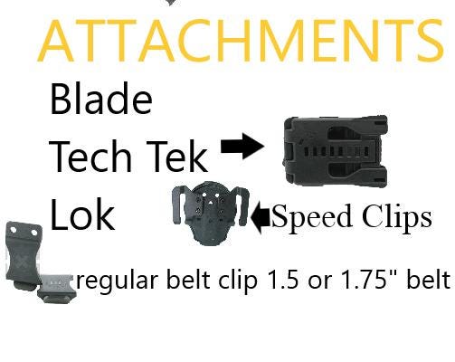 For attachment to your belt, we suggest the Blade Tech tek lok or speed clips.